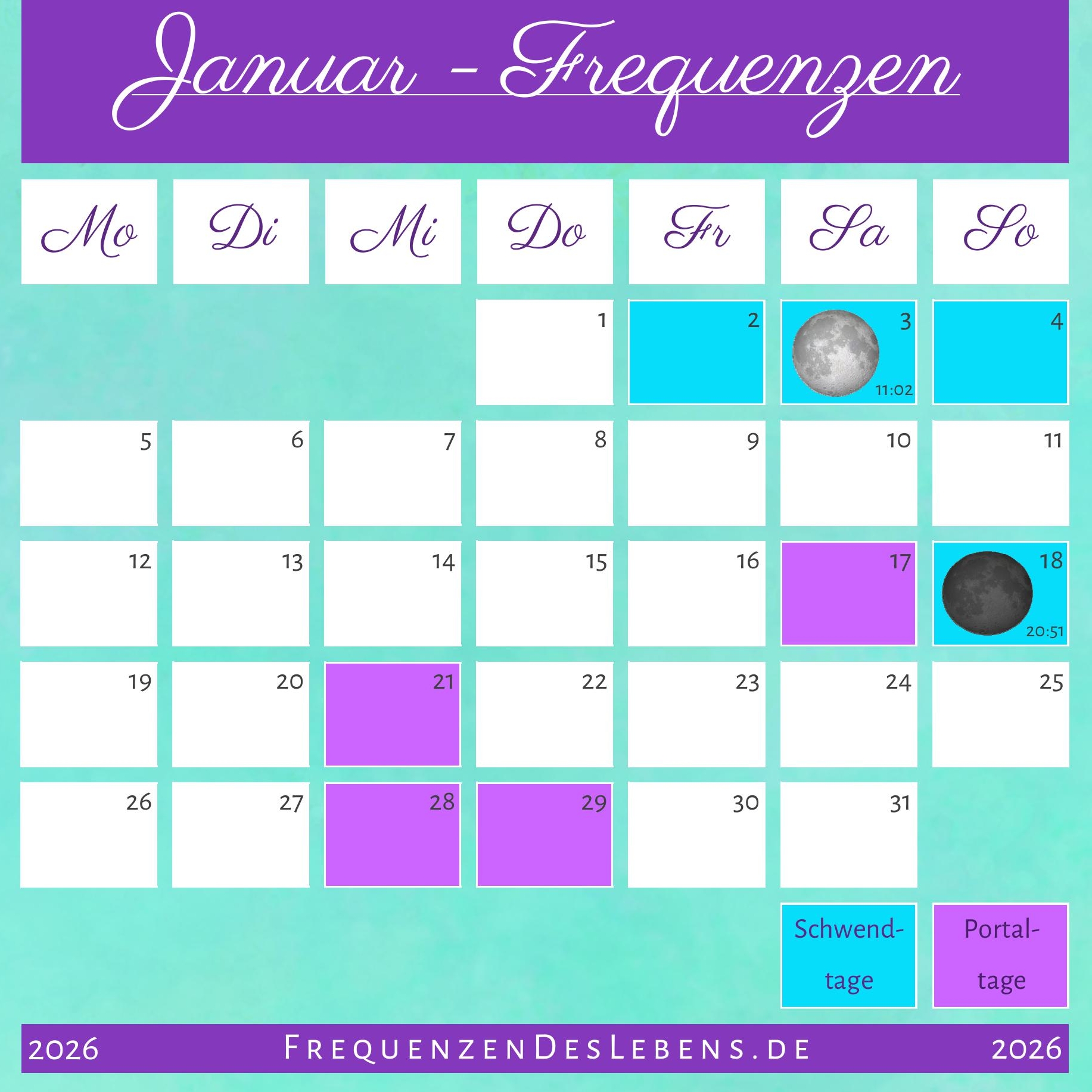 Du möchtest das monatliche Frequenzen Kalenderblatt und den Hinweis zum neuen